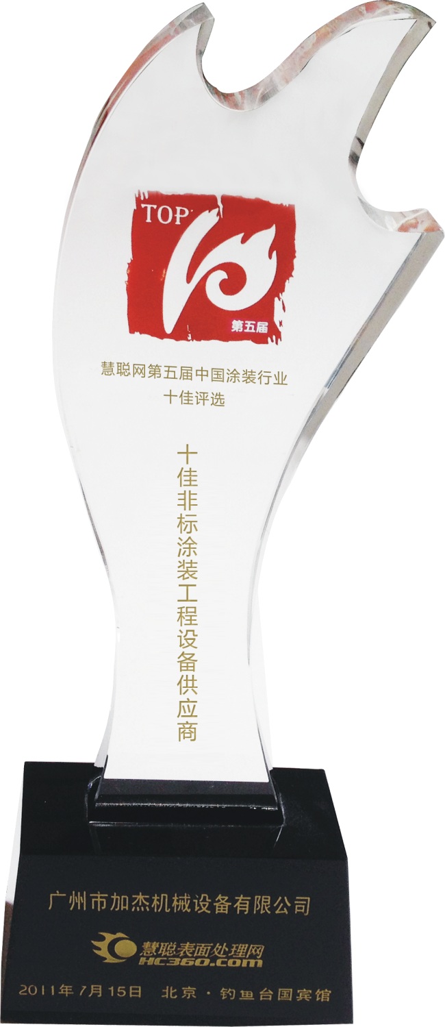 熱烈祝賀加杰機(jī)械榮獲“2011年度十佳涂裝民族品牌”稱號(hào)